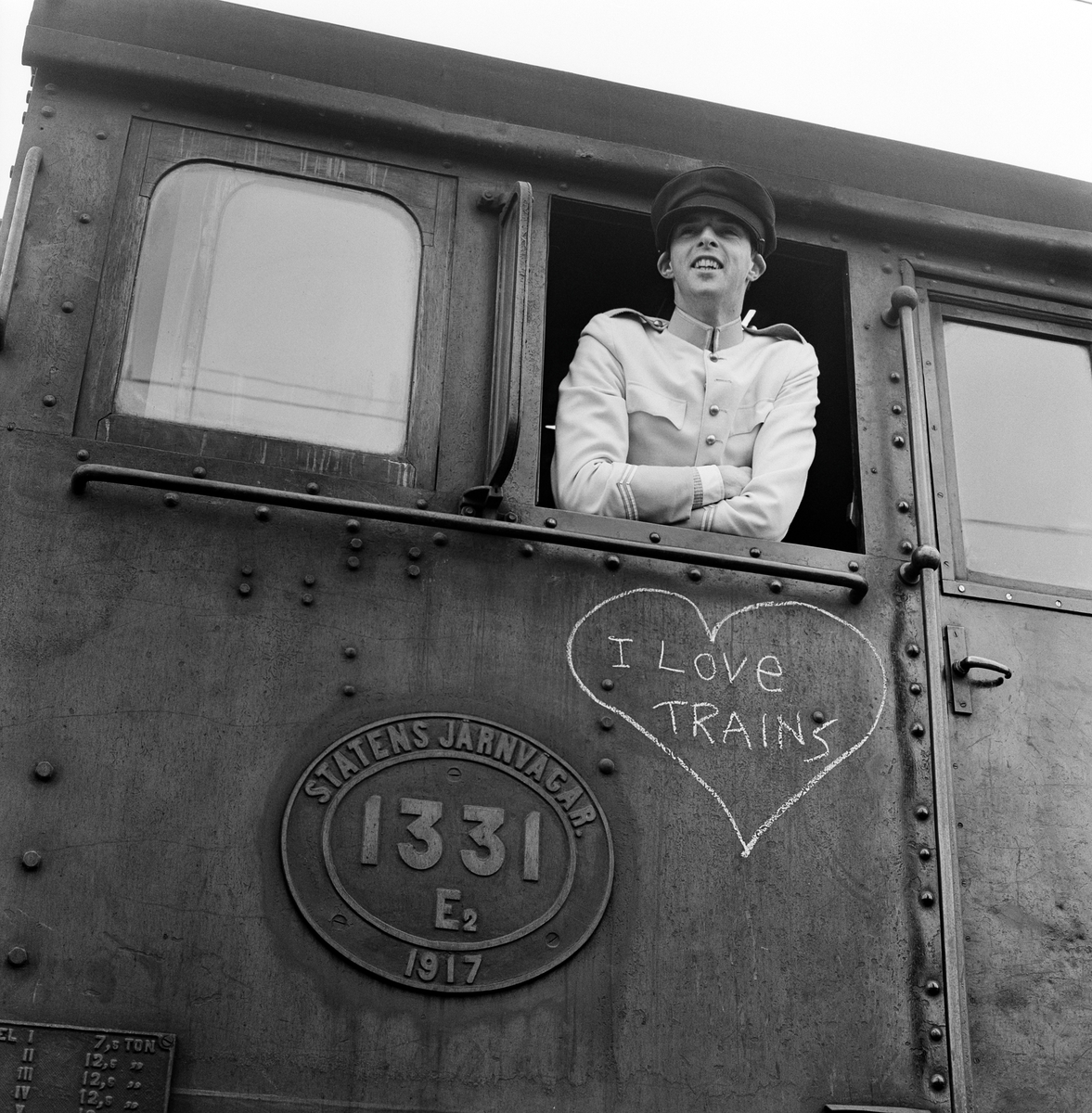Statens Järnvägar, SJ E2 1331. TV-inspelning i Hagalund. Skådespelare
