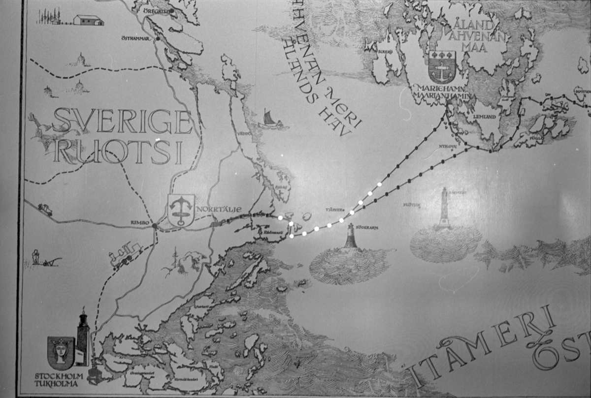 Ålandsresa. M/S Nordia. Sjökort med färdväg