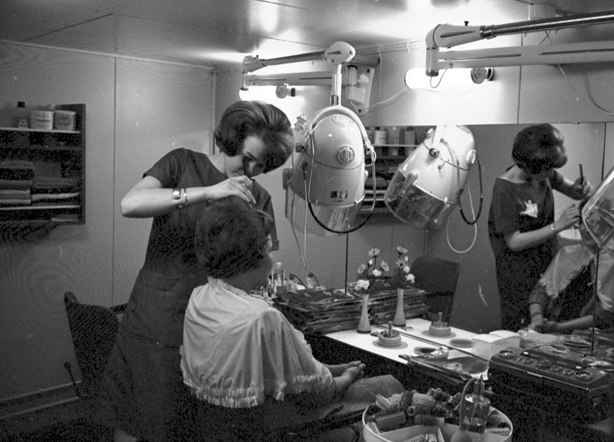 Ålandsresa. M/S Nordia. Resande på frisörsalongen