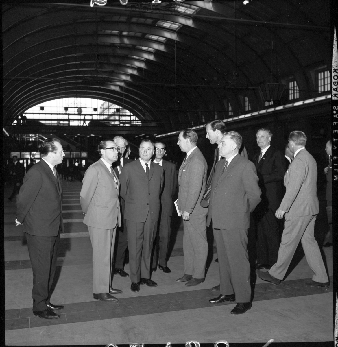 Besök av rysk minister B.P. Bestjev, Generaldirektör Erik Upmark. Fotot taget mot norr, utanför det halvmåneformade fönstret går Klarabergsviadukten, och delvis därunder Kafe´Norr.