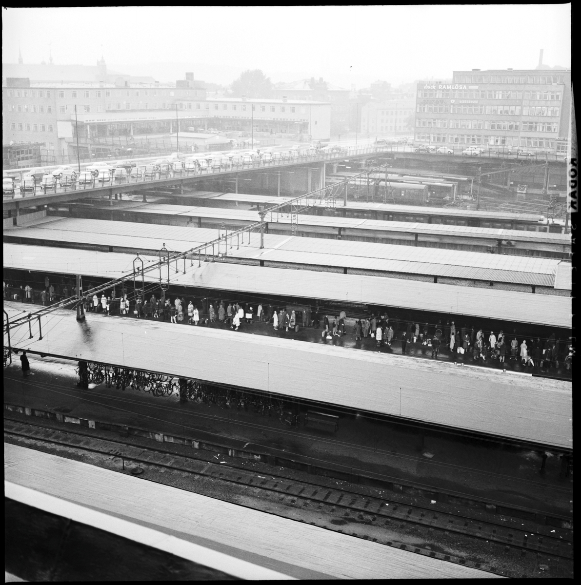 Stockholm Central, staxt norr om klarabergsviadukten. Ilgodset och bangårdsposten i bildens övre vänstra hörn.