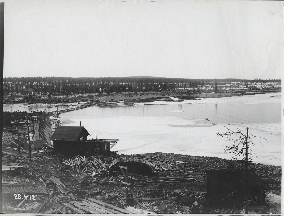 Titel: Porjus kraftverk under byggnation vid Stora Lule älv.
