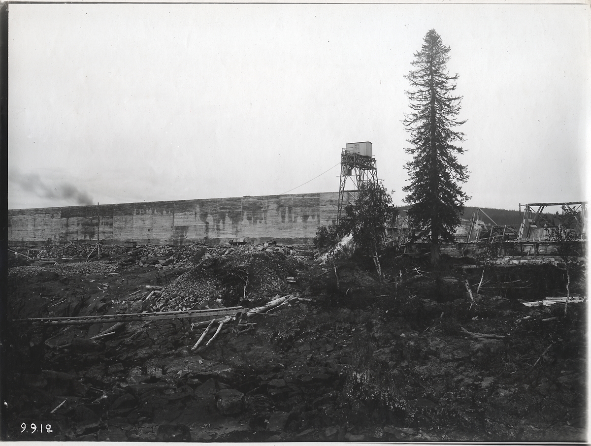 Porjus kraftverk under byggnation vid Stora Lule älv.