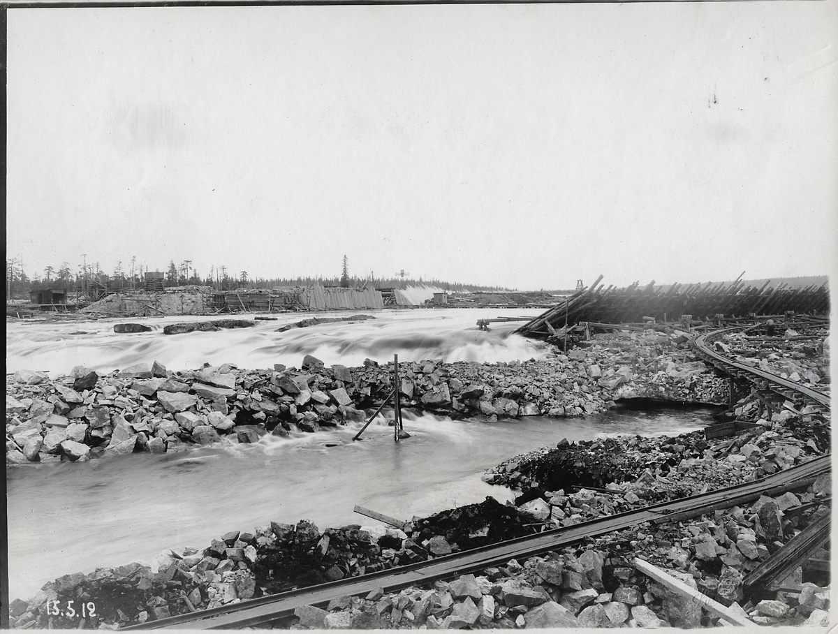 Porjus kraftverk under byggnation vid Stora Lule älv.