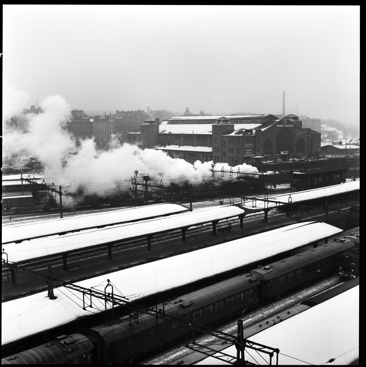 Norra delen av Stockholm C. Byggnaden på bilden är Centralsaluhallen. Kungsgatsbrons ena ände straxt till höger om saluhallen.