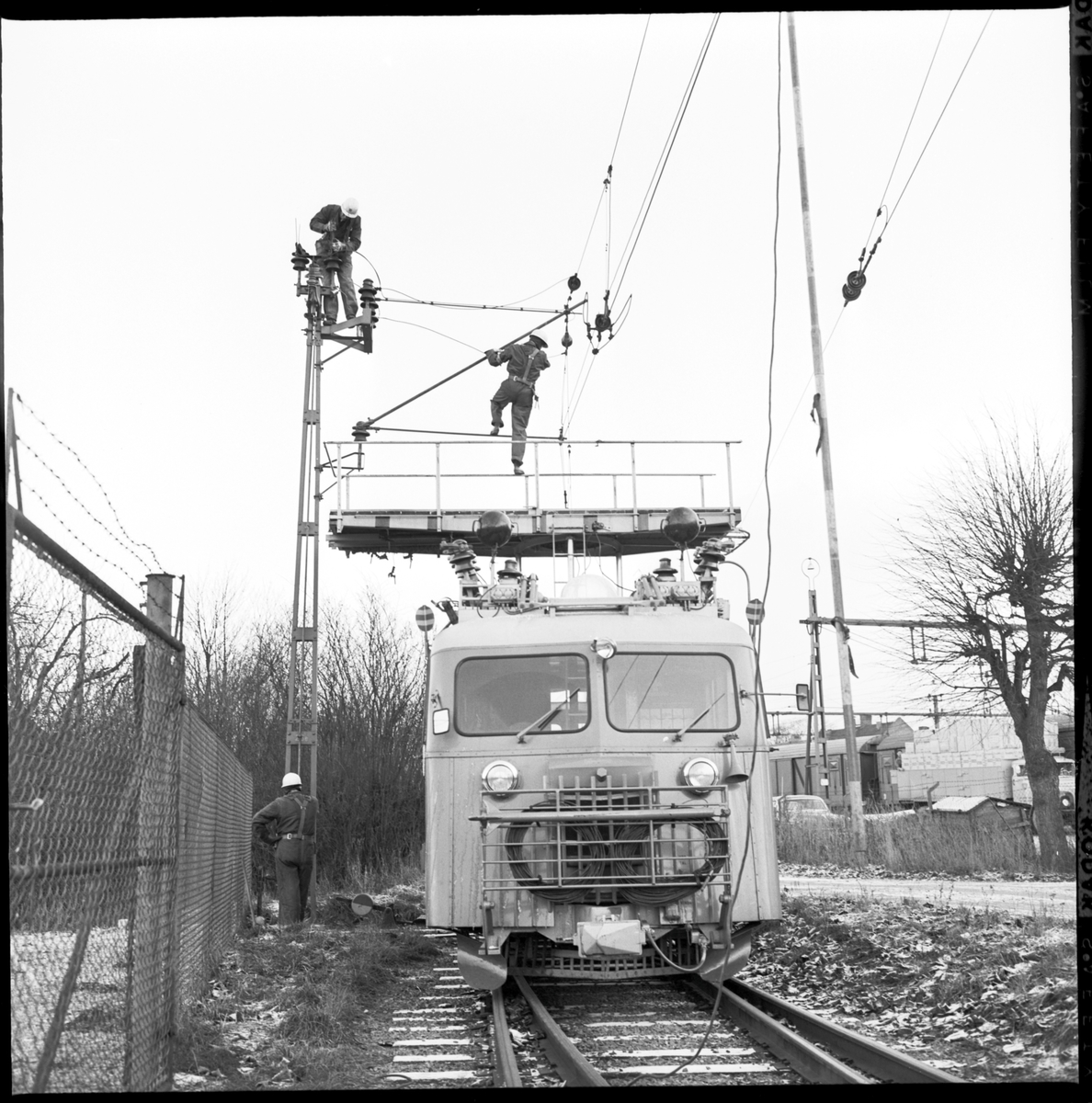 Elrevisionsarbete. SJ ELRB 3807 med arbetsbrygga