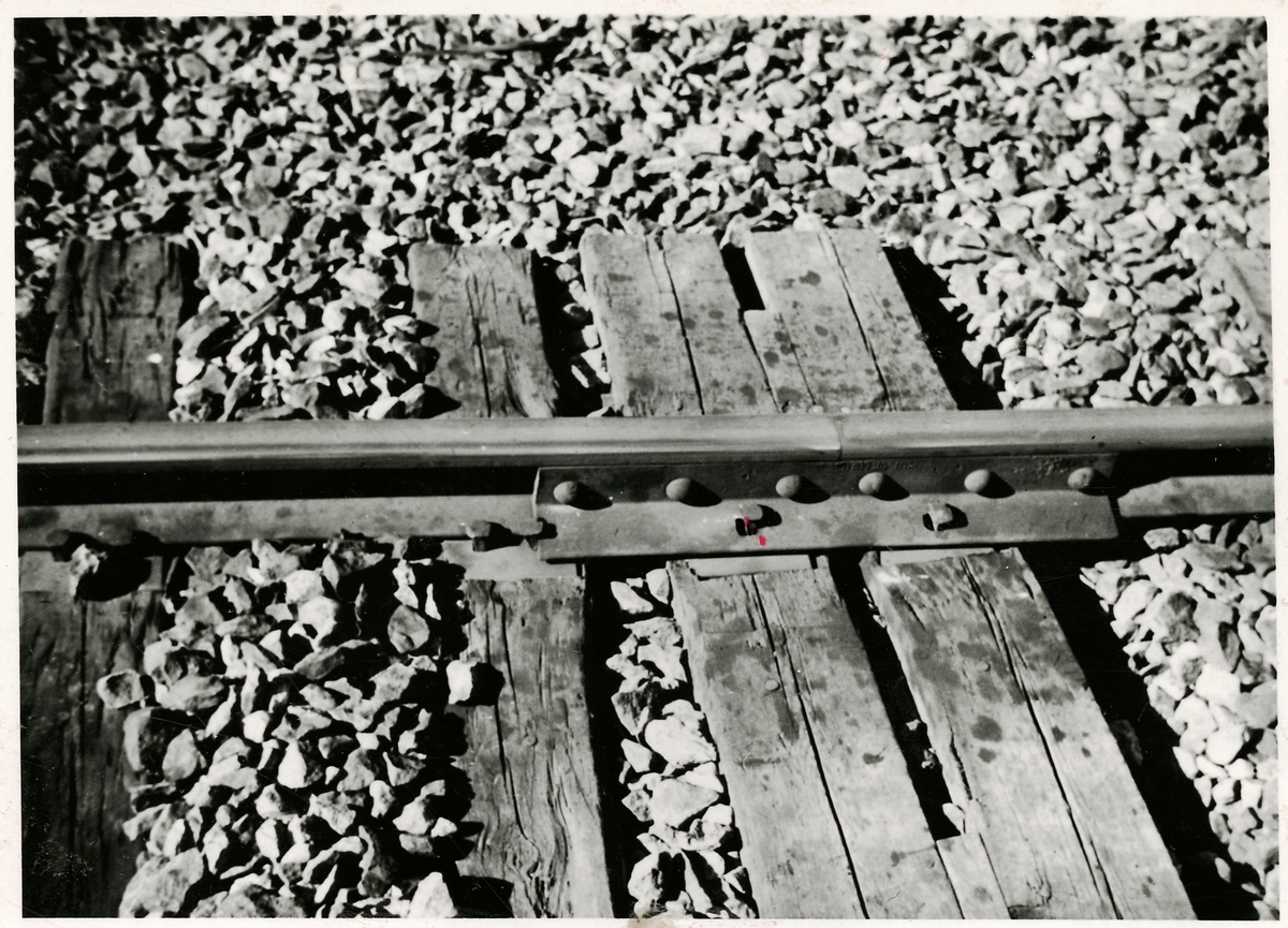 Titel: Rälsvandring på infarten till Falköping sedan enkelspåret omkopplats till dubbelspårets nedspår. 1944.
