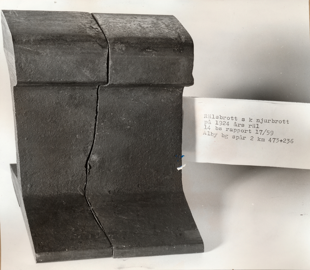 Titel: Detaljbild av rälsbrott i räl.