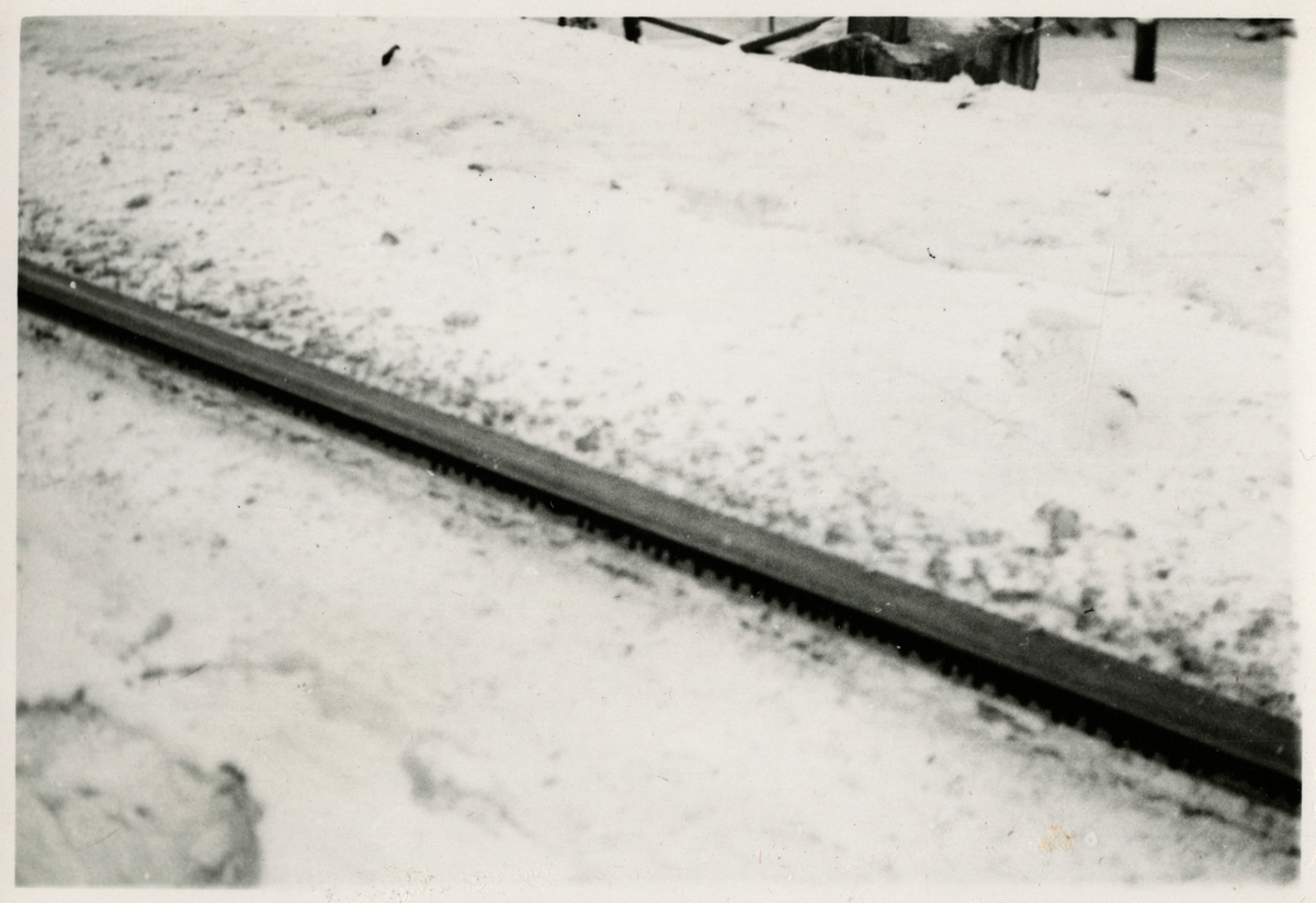 Titel: Detalj av järnvägsspår inoljat med spillolja.