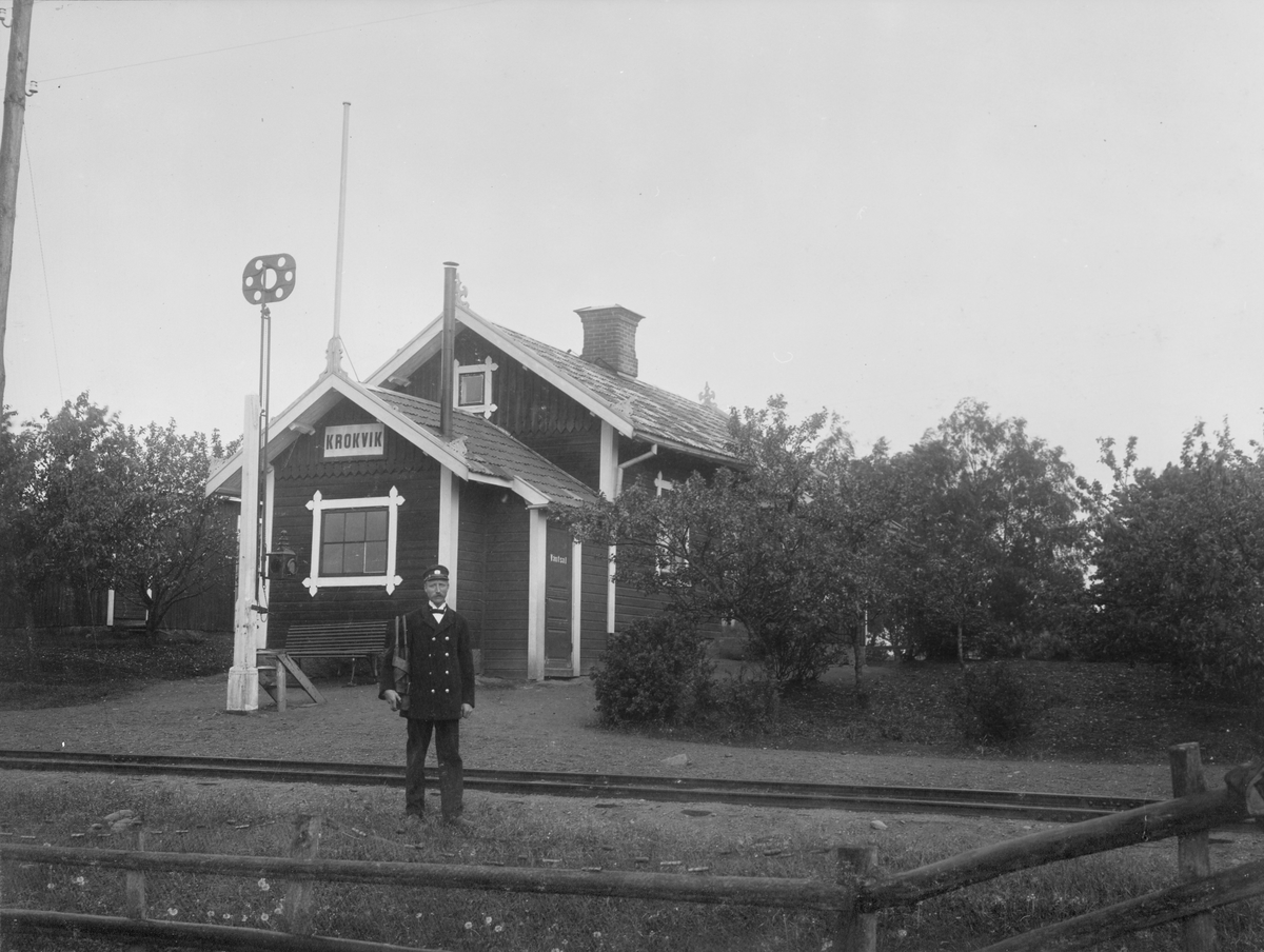 Platsvakt F Gren poserar vid hållplatsen i Krokvik.