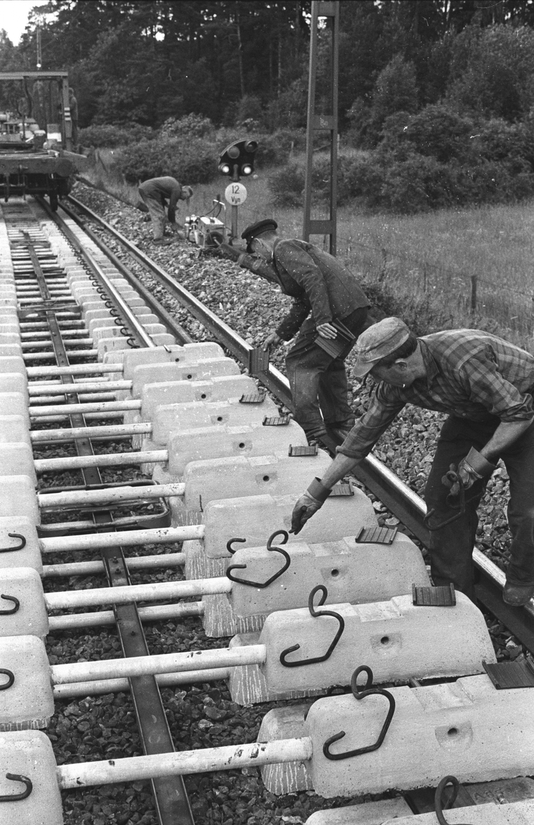 Spårrevision. Räls och slipersbyte (betongslipers). Linjen Rotebro, R - Zlpv