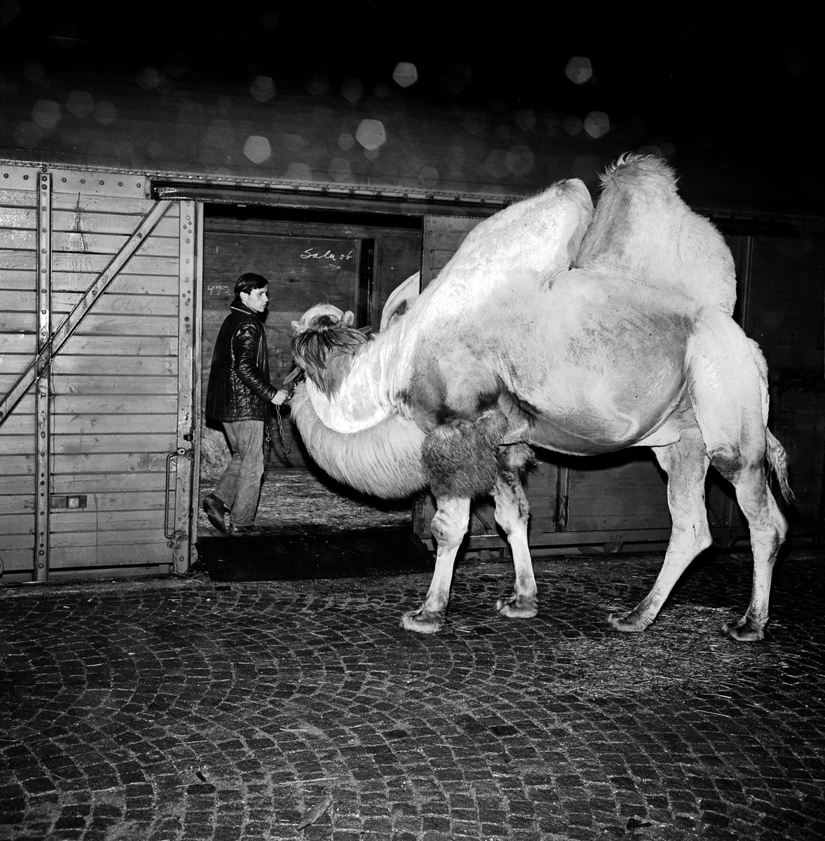 Cirkustransport med Circus Scott, Stockholm-Oslo. Kamel