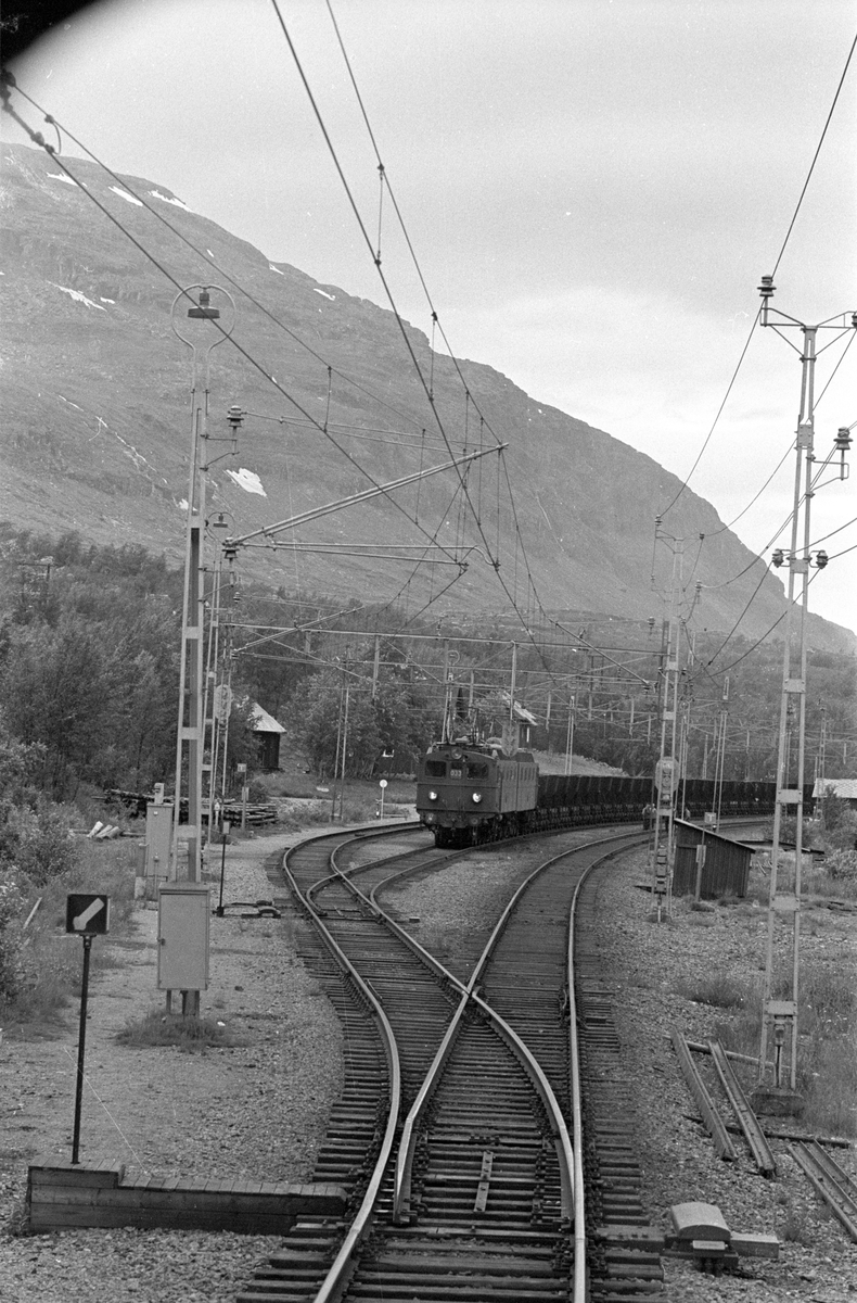 Nordpilen. Tågmöte med malmtåg i Kopparåsen.