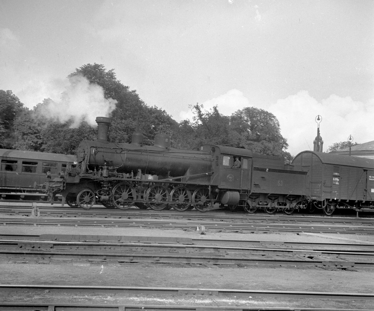 Statens Järnvägar, SJ E2 982 med resgodsvagn avsedd för cykeltransporter, cykelvagn, SJ F6 37456.