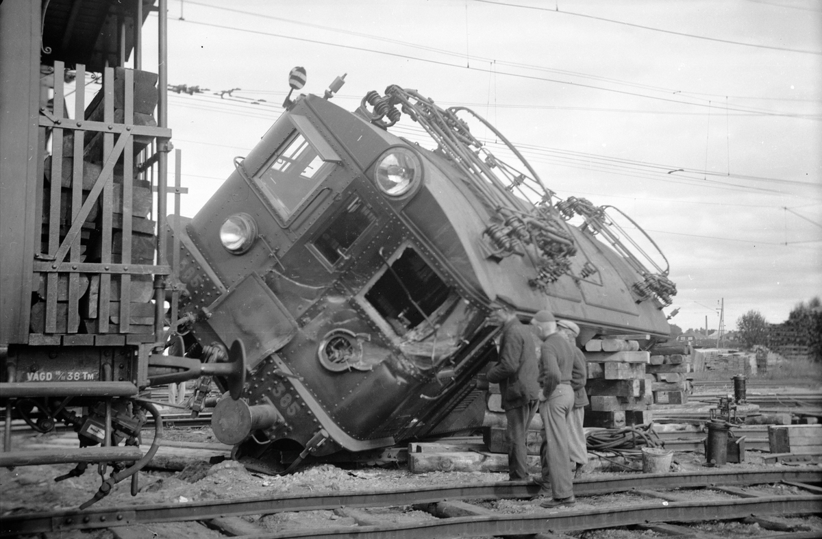 Statens Järnväg, SJ Dg 385 urspårad med tåg 4227