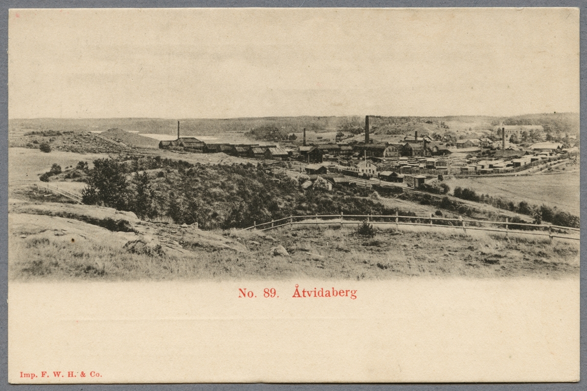 Vy över Åtvidaberg brukssamhälle med järnvägsstationen centralt i bilden.