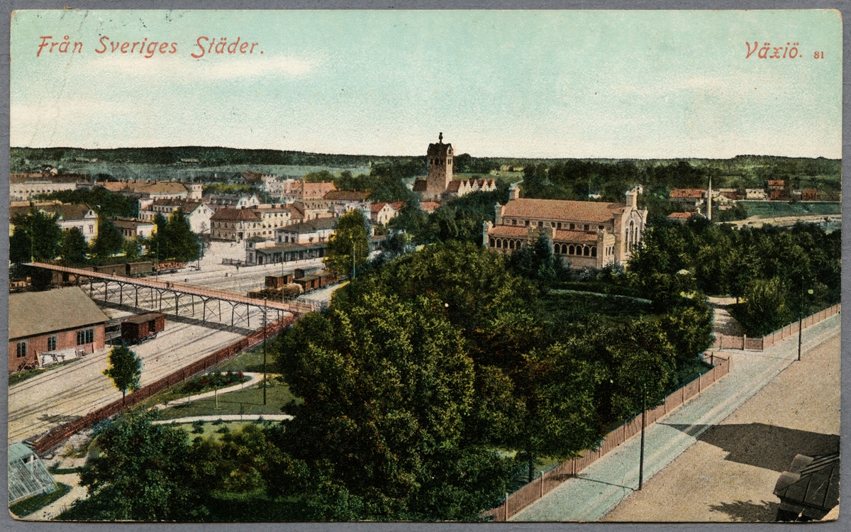 Vy över Växjö med Växjö Domkyrka i bakgrunden.