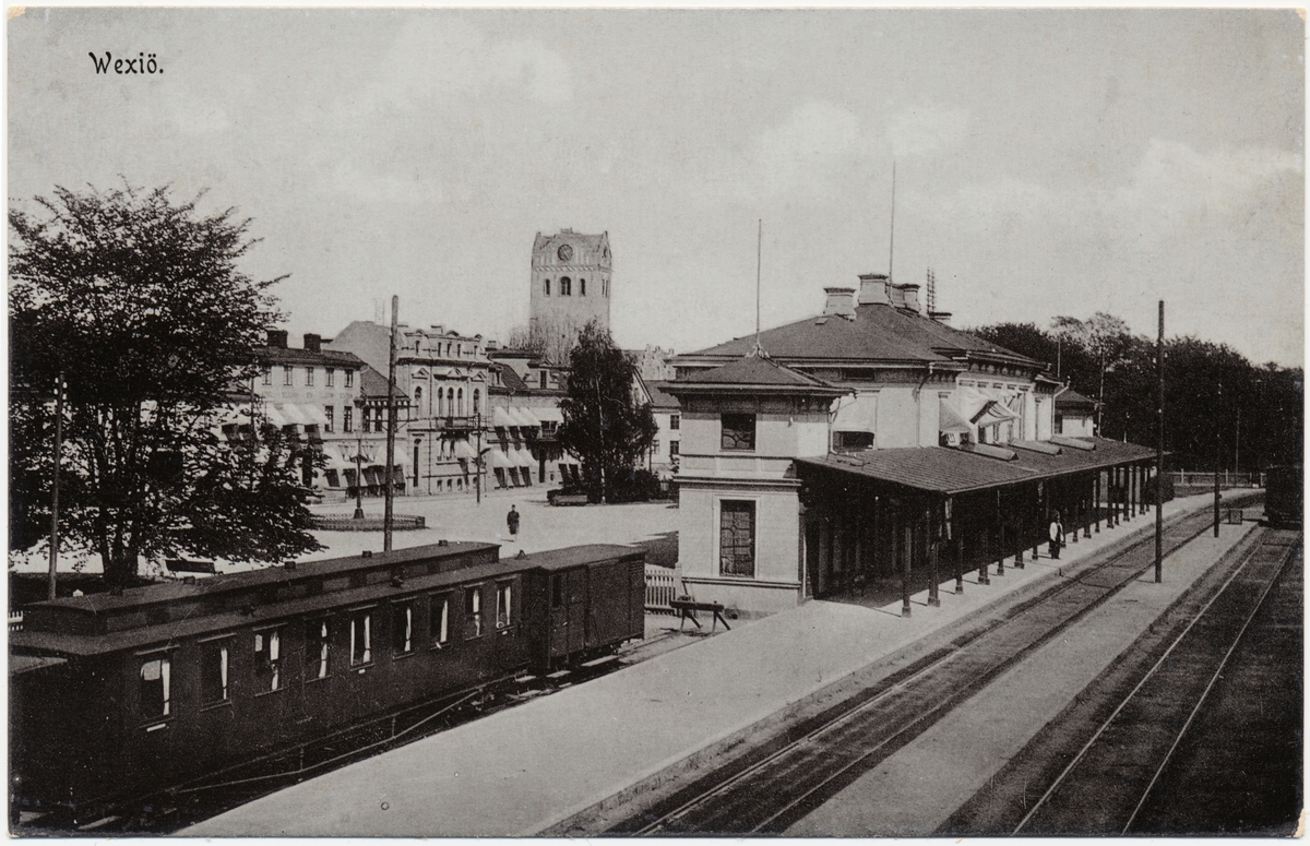 Station med Växjö domkyrka i bakgrunden.