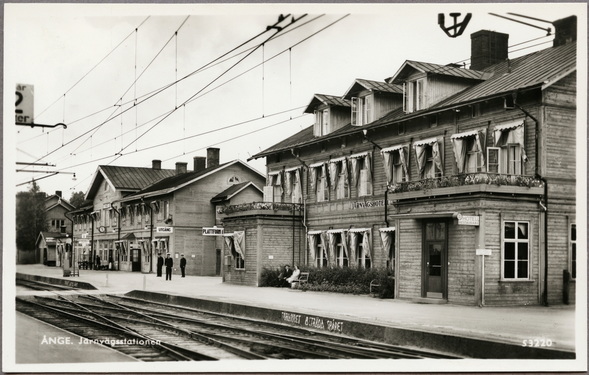 Stationsområdet i Ånge med järnvägshotellet och stationshuset.