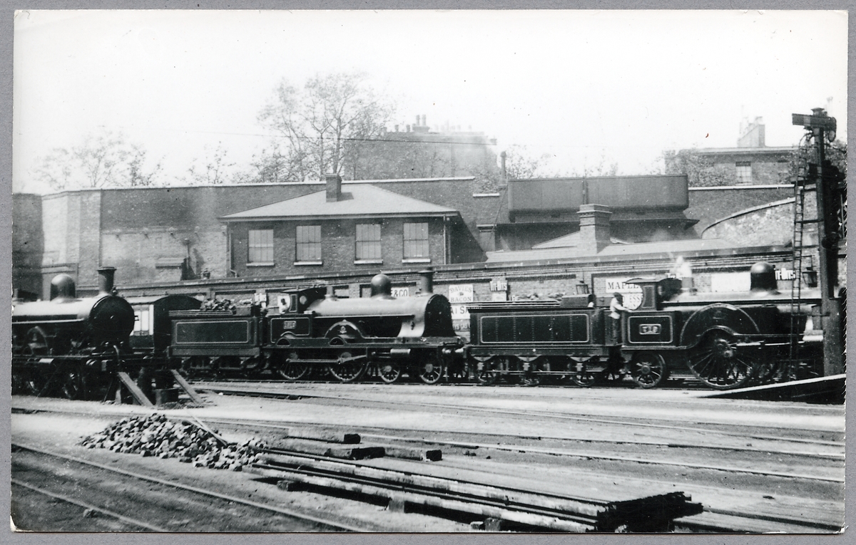 Ånglok nummer 719 "Outram" och 1912 "Colossus". Till vänster står 525 "Princess May" mot en stoppbock.