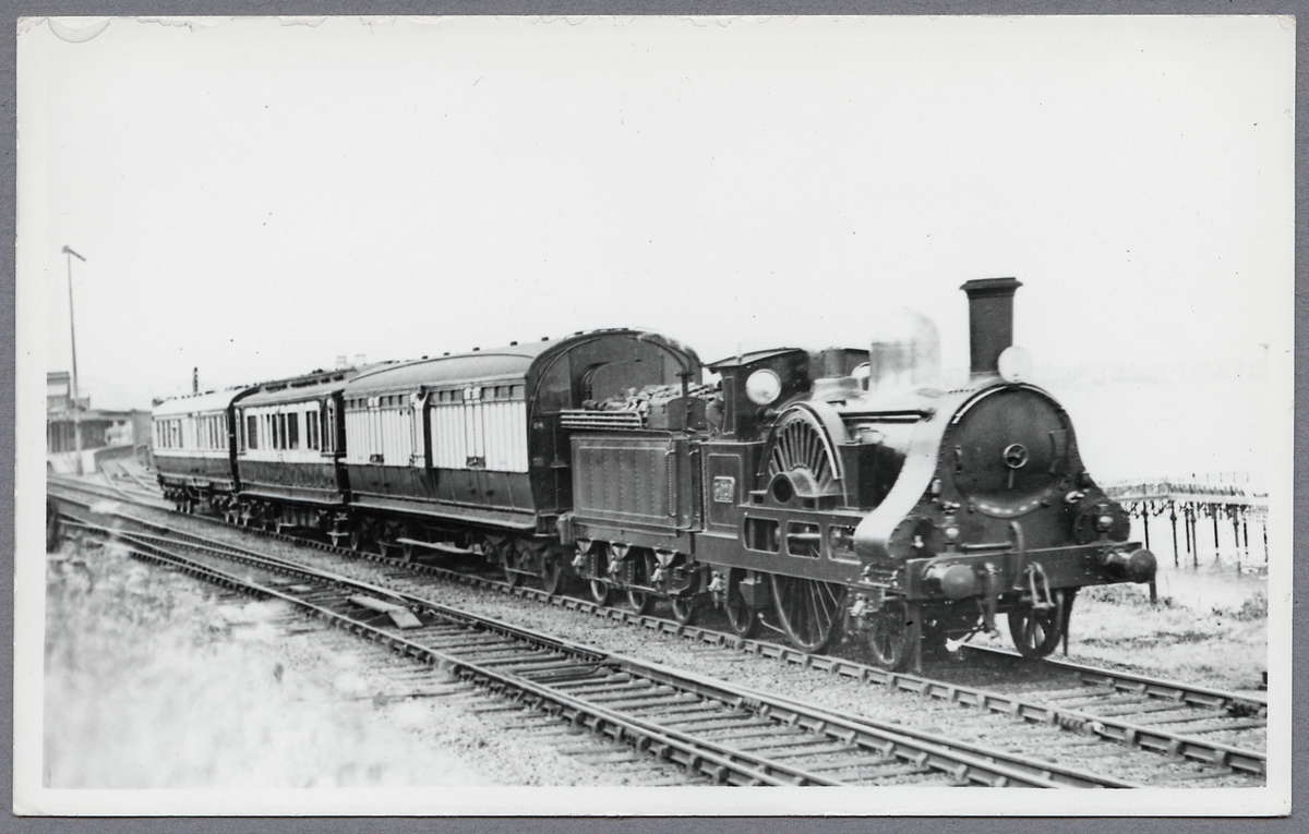 Ånglok med personvagn.