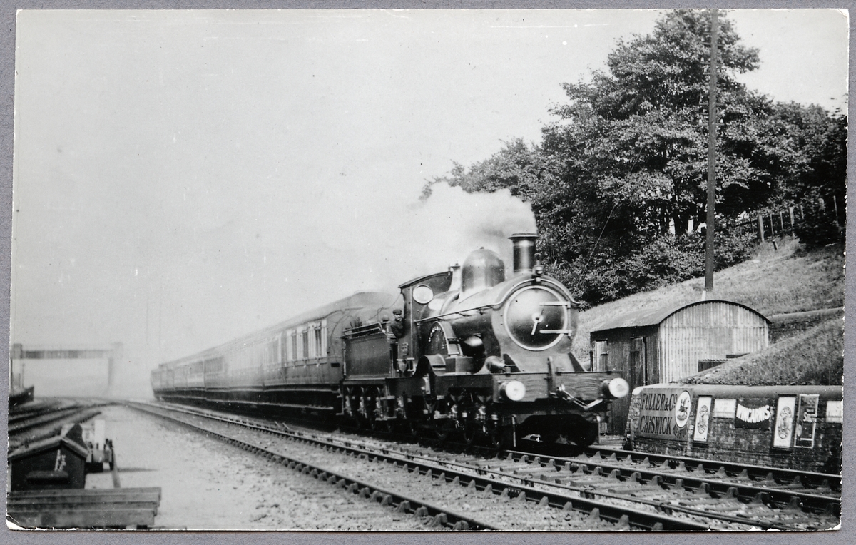 Ånglok med personvagn.