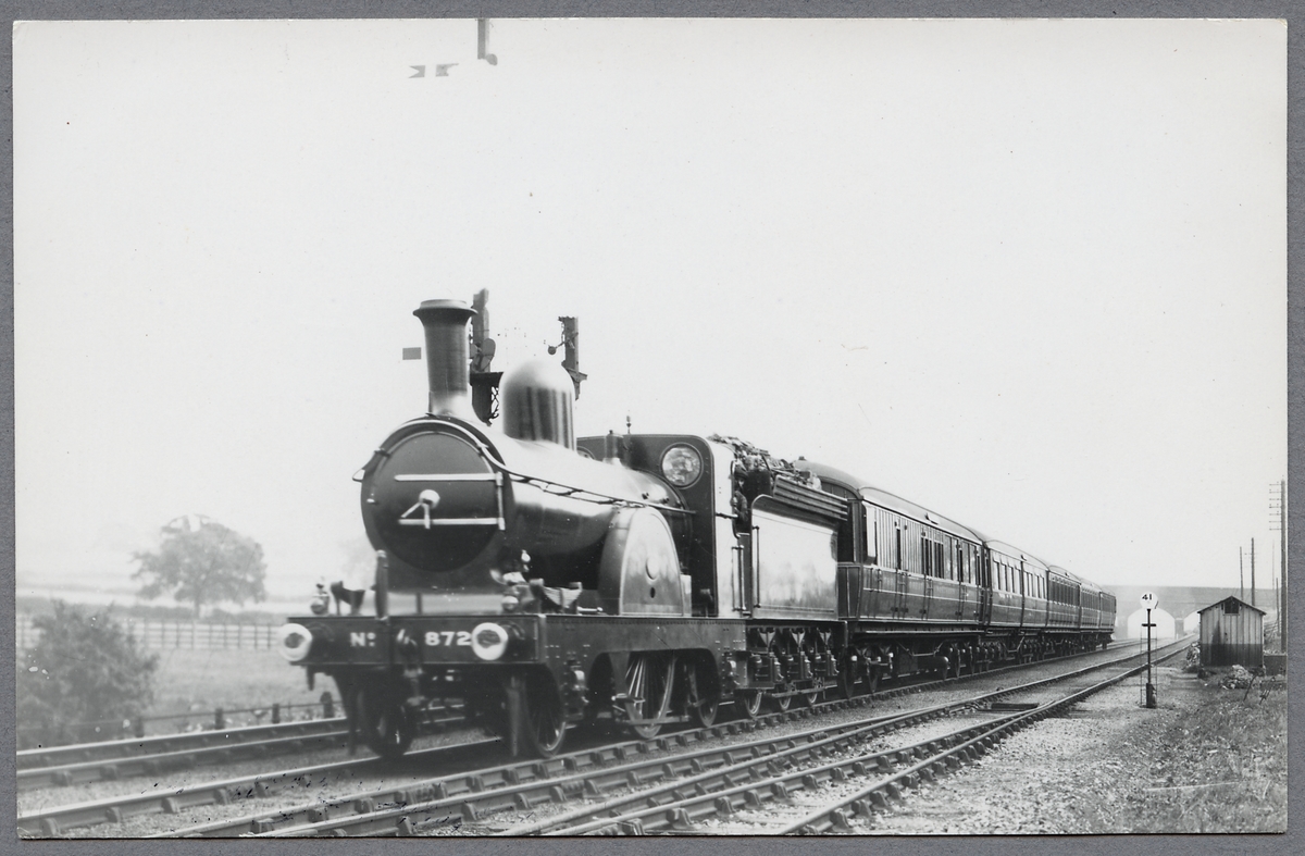 Ånglok nummer 872 med personvagn.