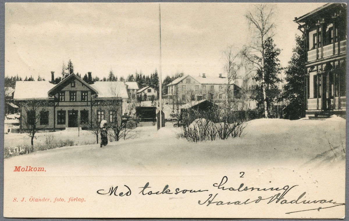 Molkoms stationshus i vinterskrud.