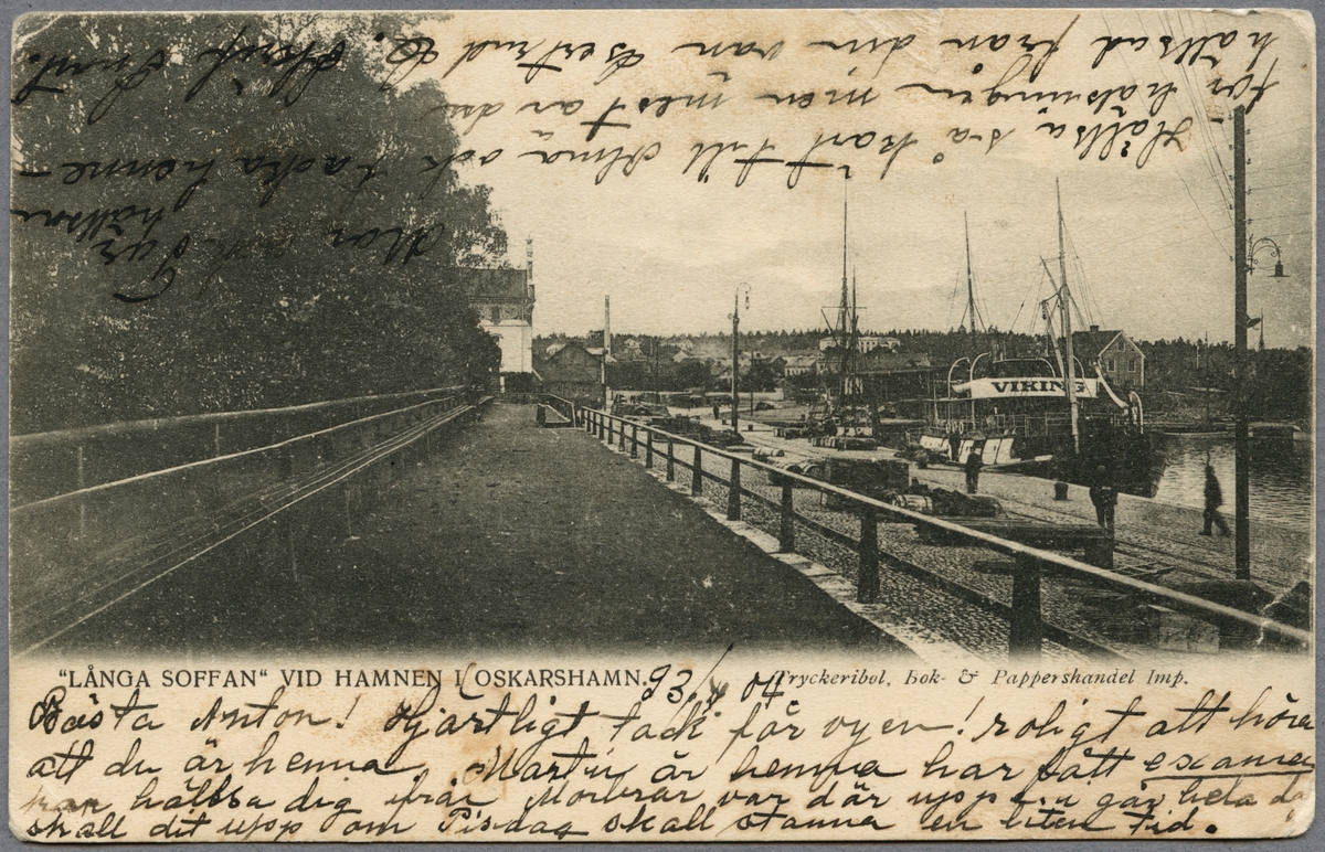 Fartyget S/S Viking och parkbänken Långa Soffan vid hamnen i Oskarshamn.