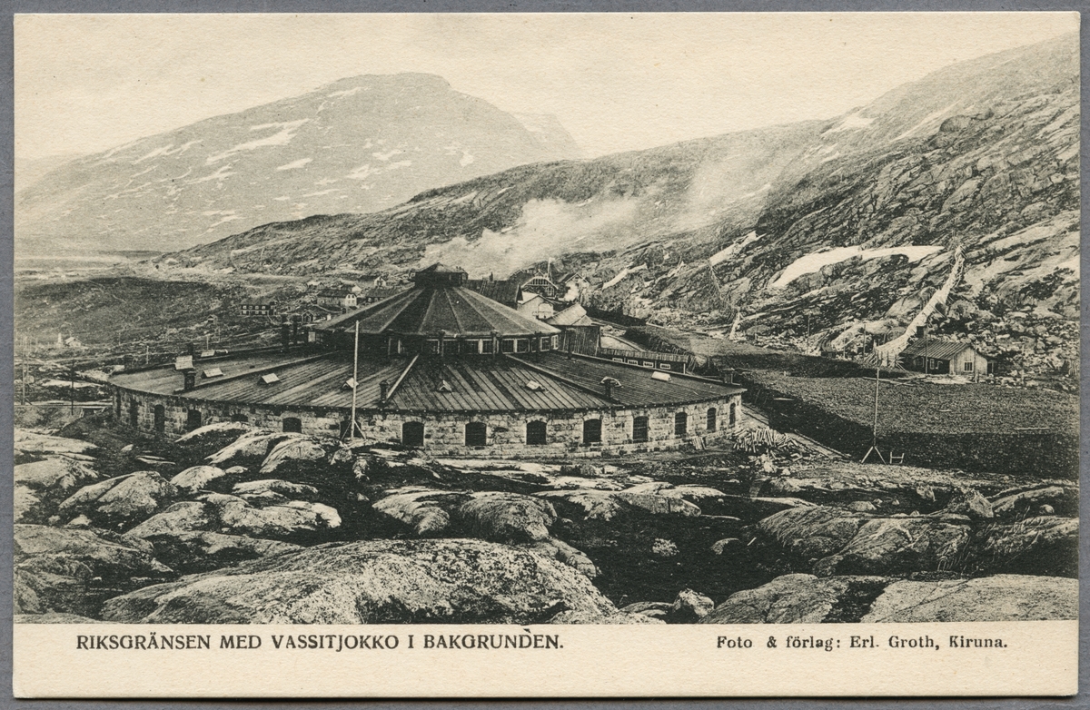 Riksgränsen med lokstallet i förgrunden samt Vassitjokko i