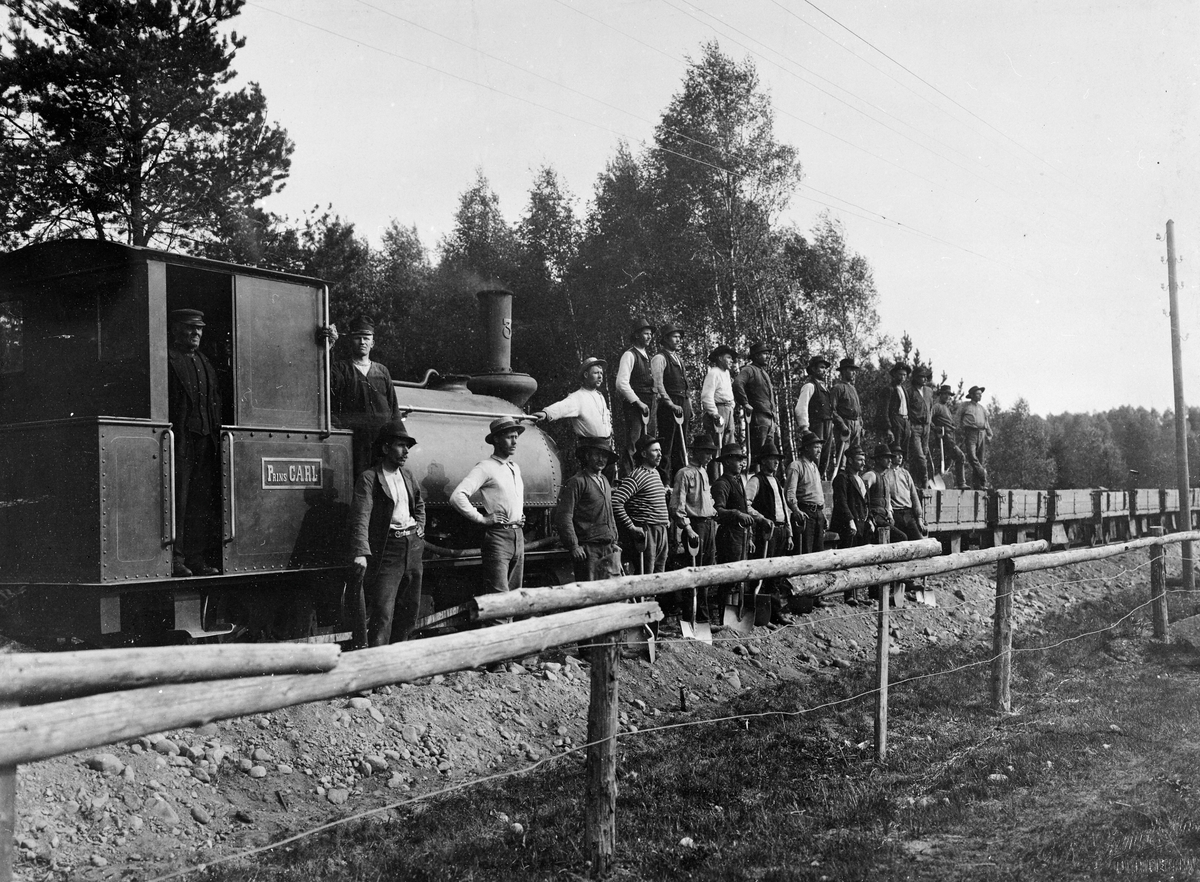 Ulricehamns Järnväg, UJ lok 3 "Prins Carl" med grusvagnar.