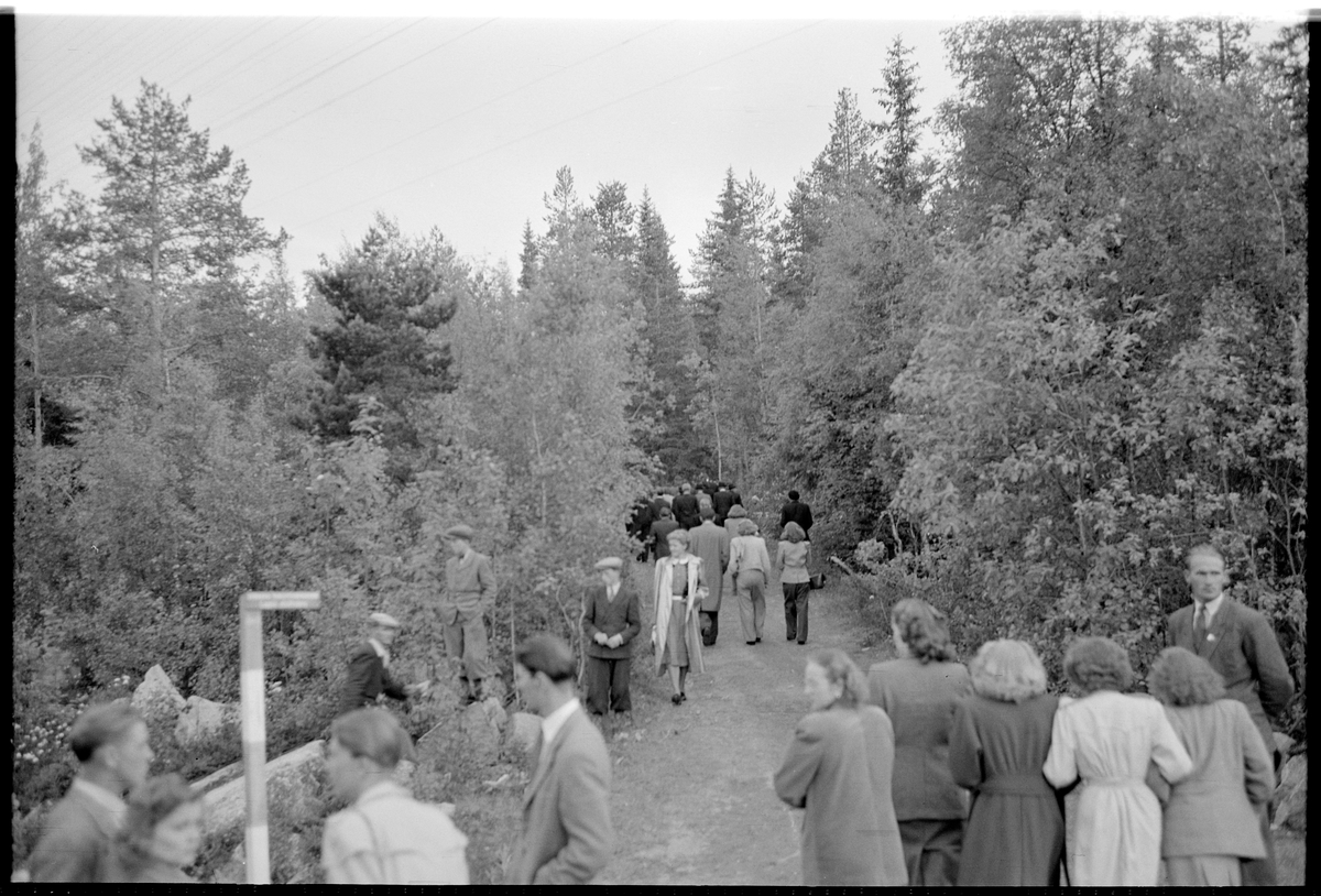 Ett stort antal människor på väg mot Luppiobergets topp, mellan Hedenäset och Övertorneå.
