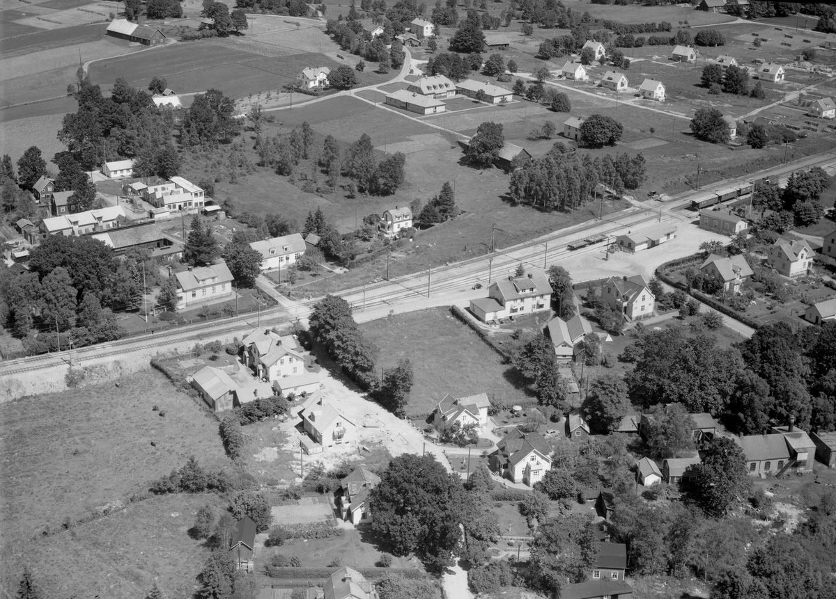 Flygfoto över Gemla järnvägsstation med omnejd.