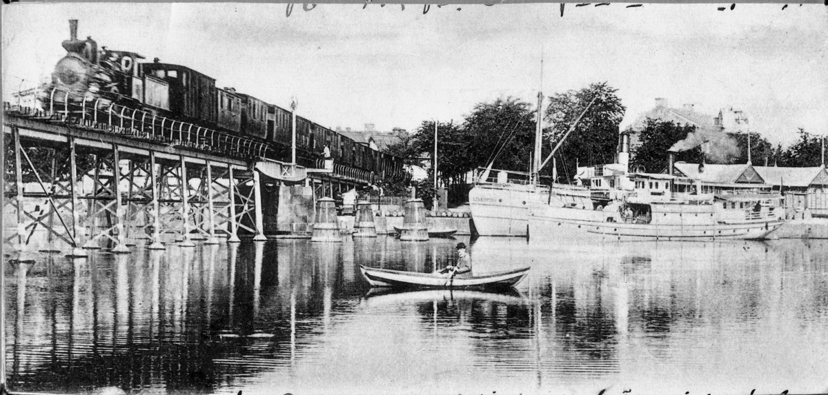 Posttransport med Statens Järnvägars, SJ Da lok på bro över Stångån