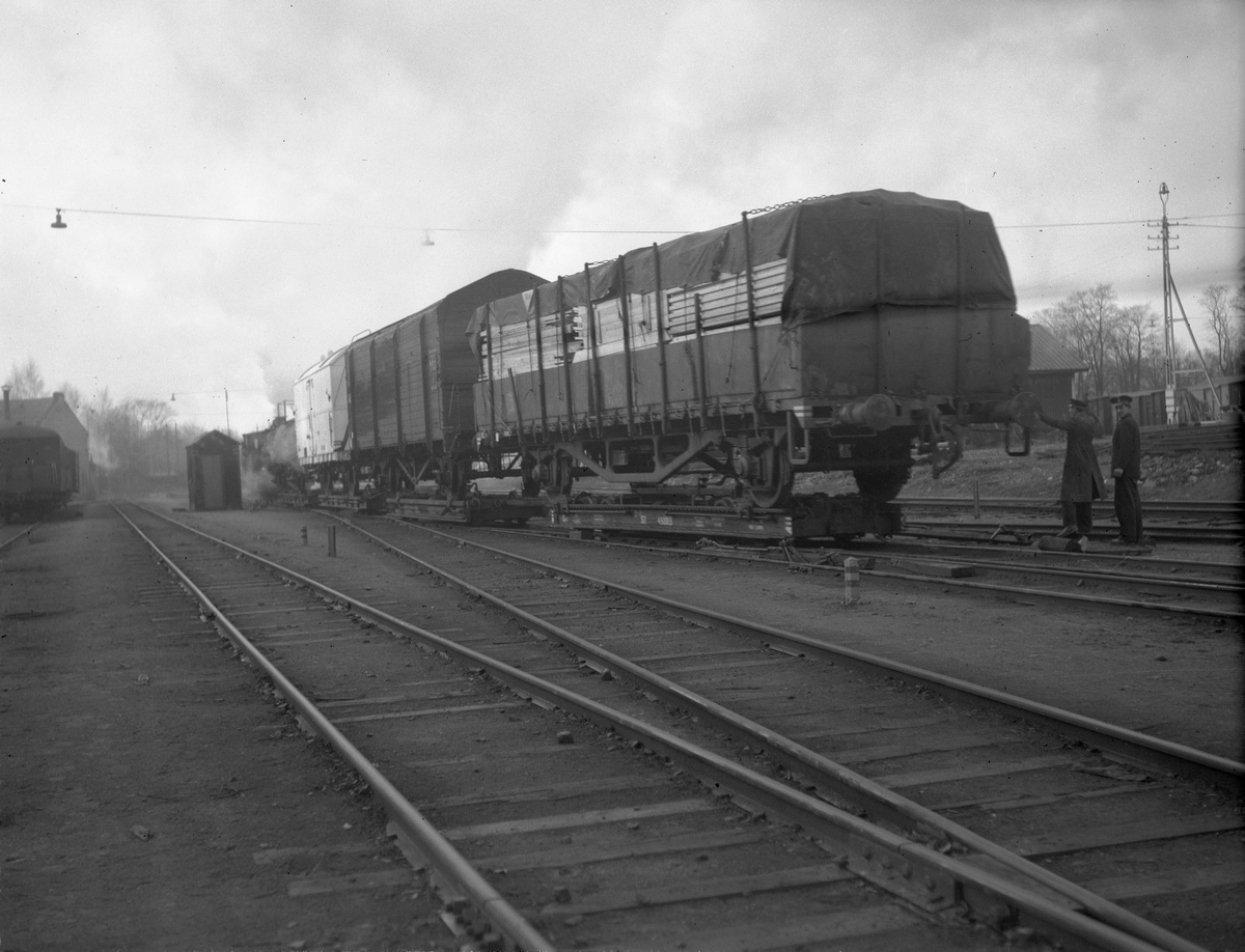 Statens Järnvägar, SJ godståg. Överföringsvagnar, Växjö.