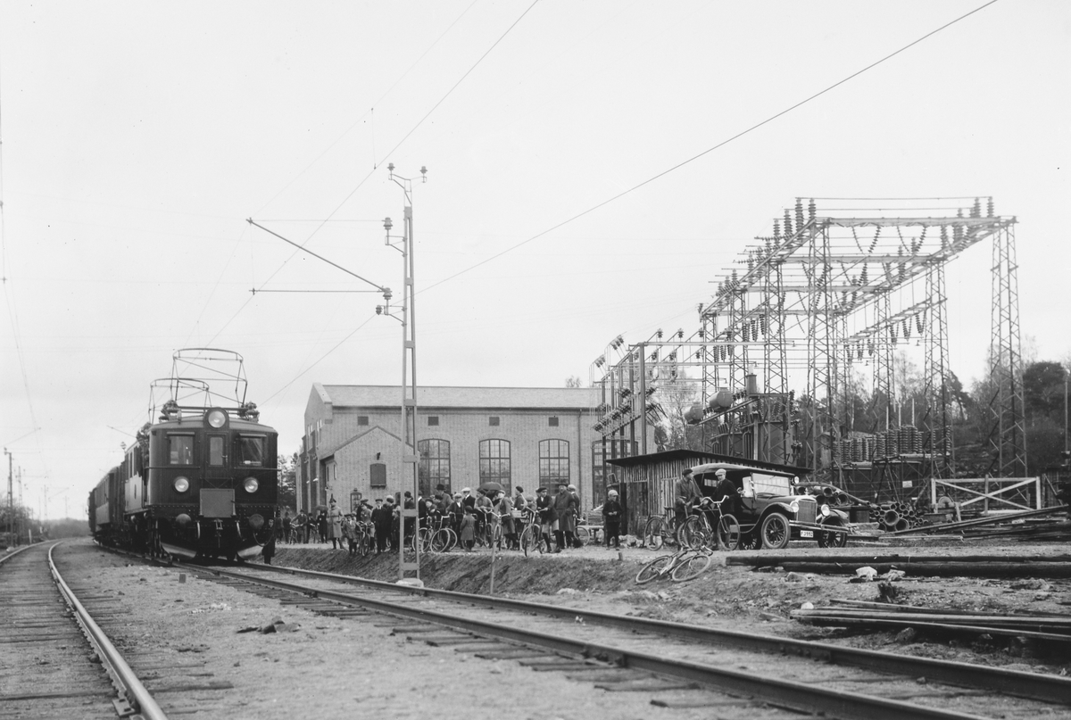 Statens Järnvägar, SJ D 102,första eltåg i närheten av Alingsås.