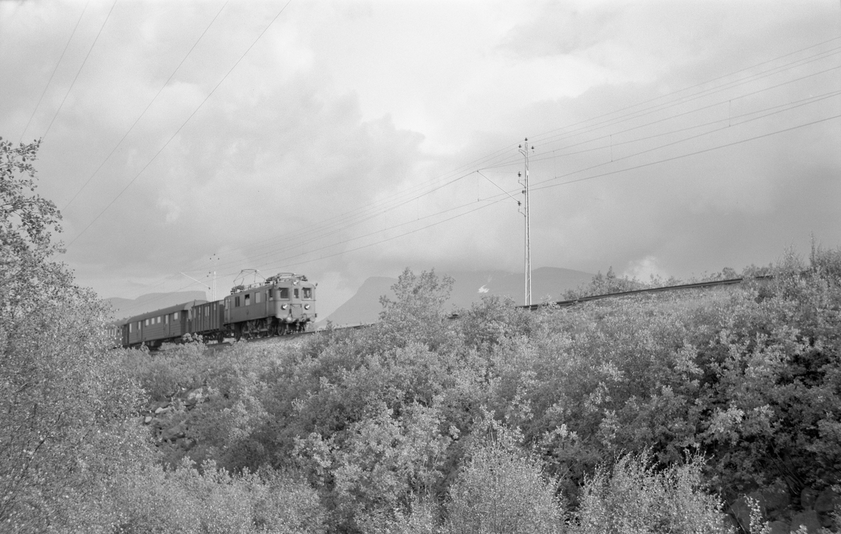 Statens Järnvägar, SJ D-lok med tåg i Norrland.
