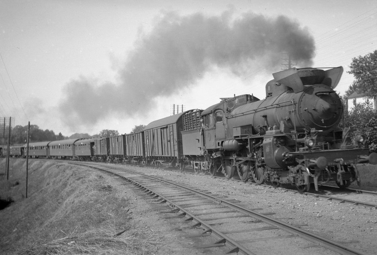 Statens Järnvägar, SJ B 1034 med persontåg.
