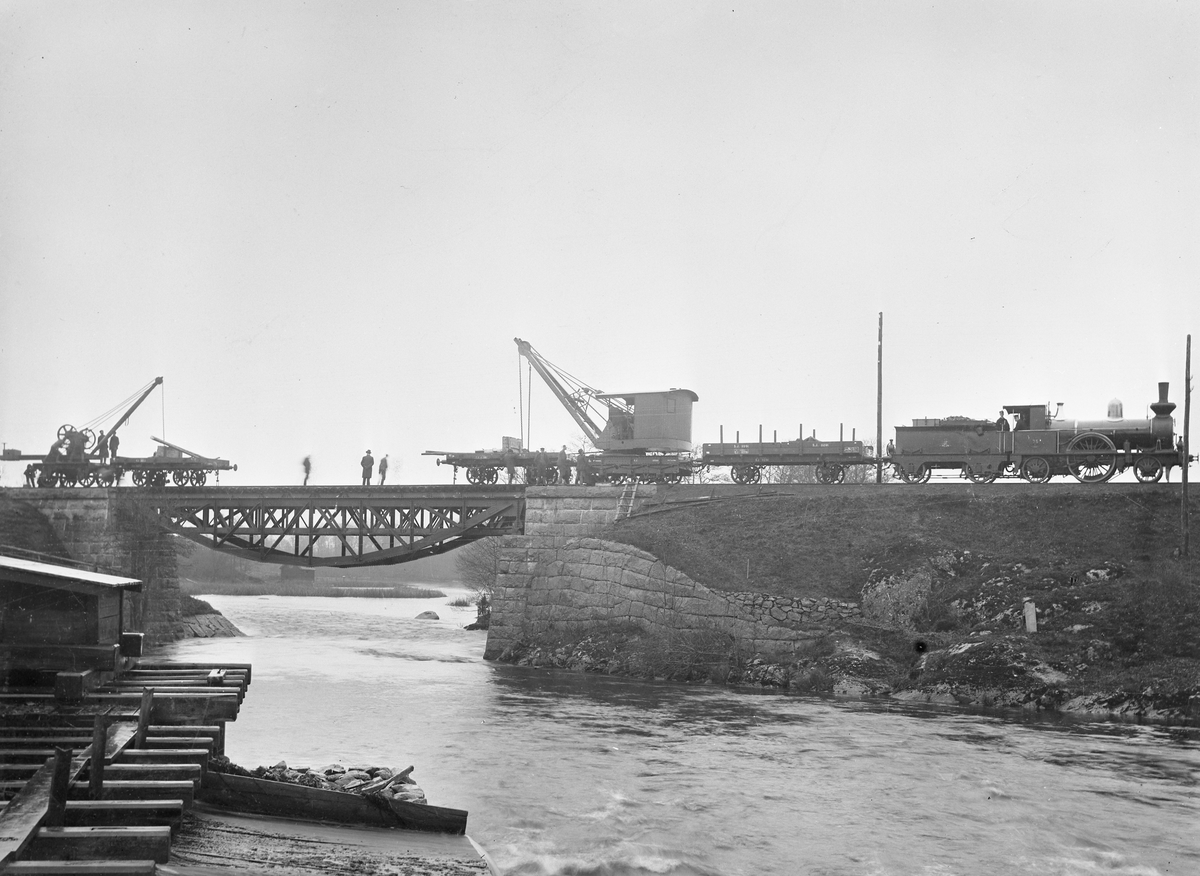 Statens Järnvägar, SJ 75 " Göta " vid brobyte för Motala Verkstad.