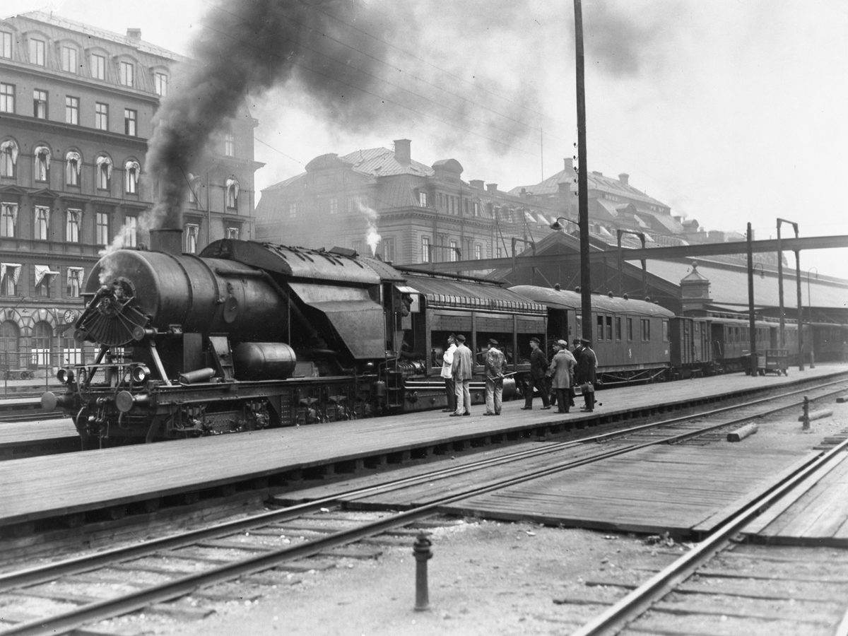 Statens Järnvägar, SJ Å. Ljungströms provturbinlok byggt av Nydqvist & Holm, NOHAB, i Trollhättan 1922. På bilden klart för avgång med ett provtåg.