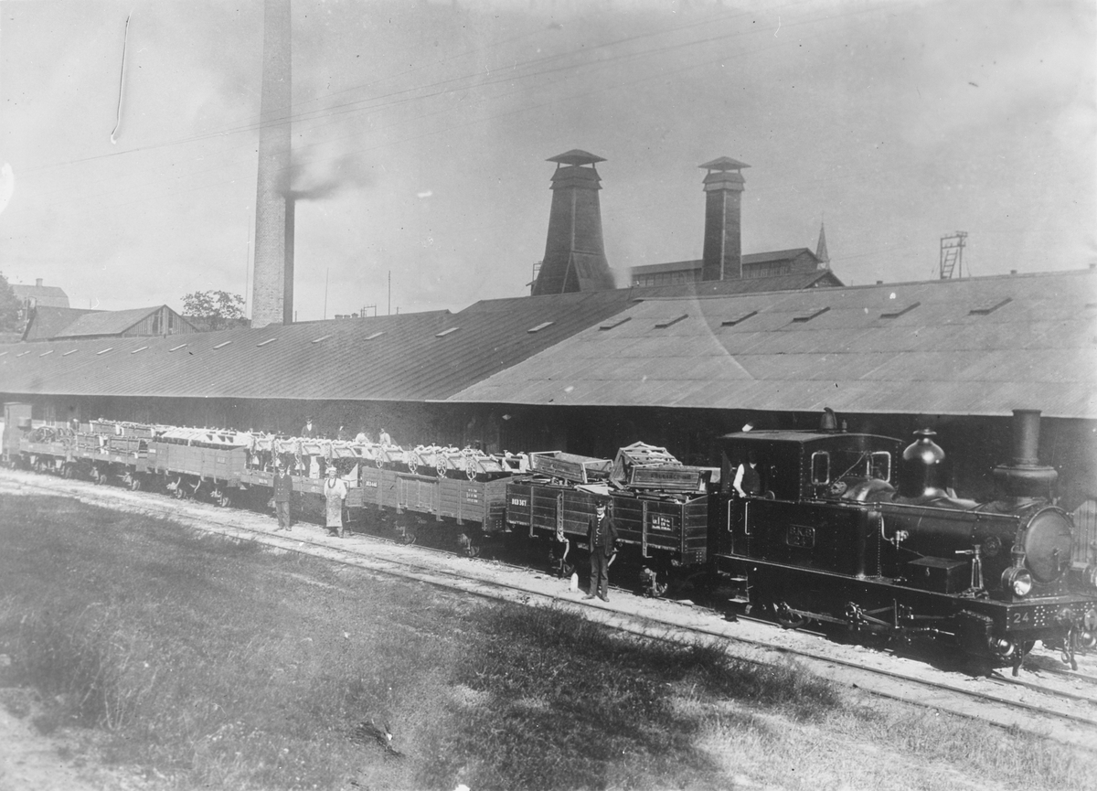 Blekinge Kustbanor, BKB lok 24 med godsvagnar i Kockums Jernverk.