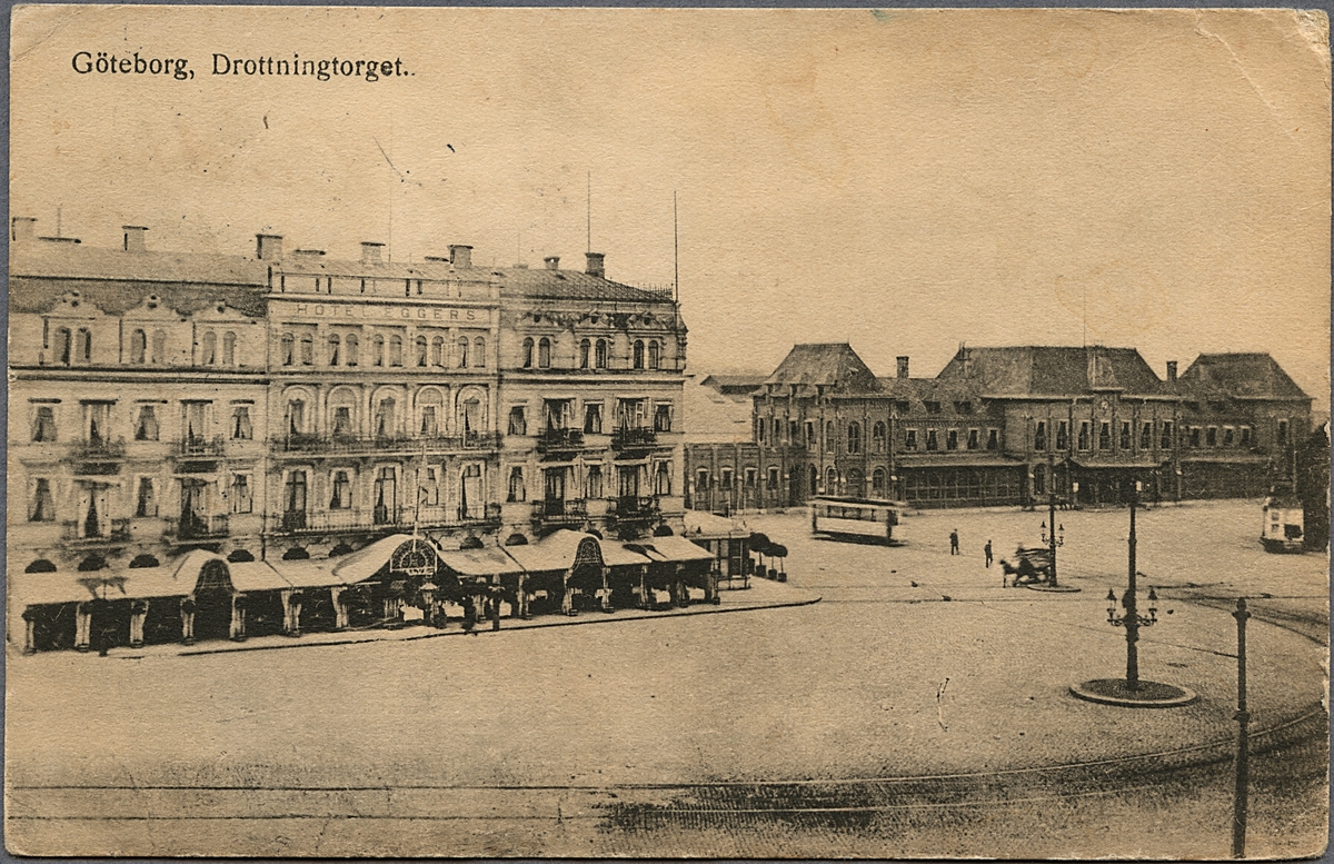 Drottningtorget i Göteborg med Hotell Eggers och Centralstationen.