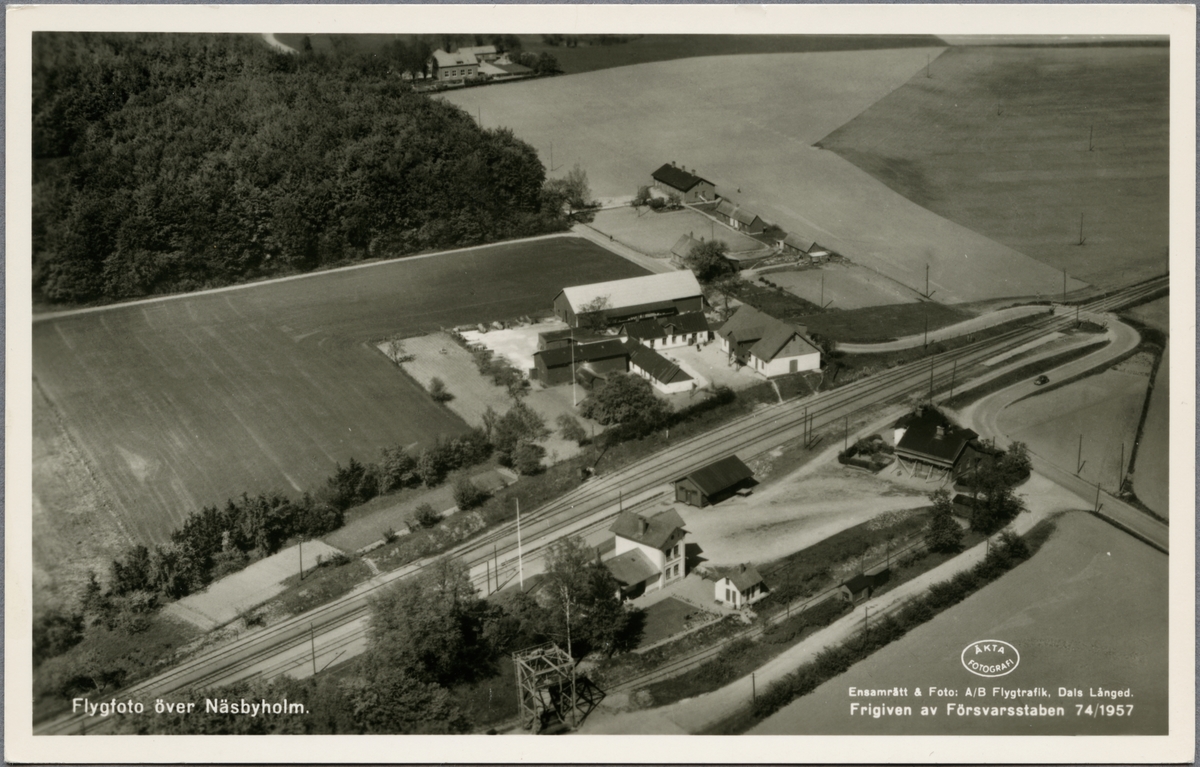 Näsbyholm, den ljusa, högre byggnaden i nederkant är stationshuset.