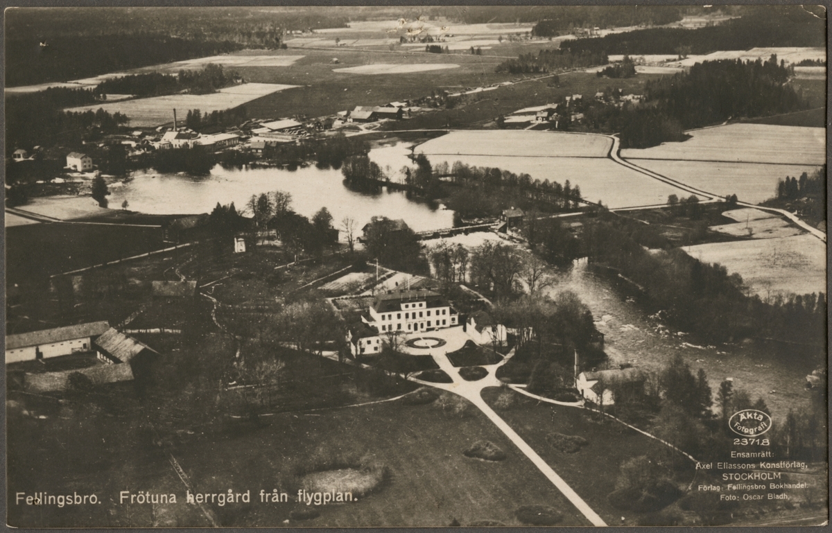 Flygfoto över Frötuna herrgård vid Arbogaån utanför Fellingsbro.