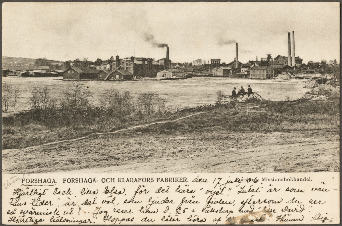 Vy över Forshagafors och Klarafors fabriker i Forshaga.