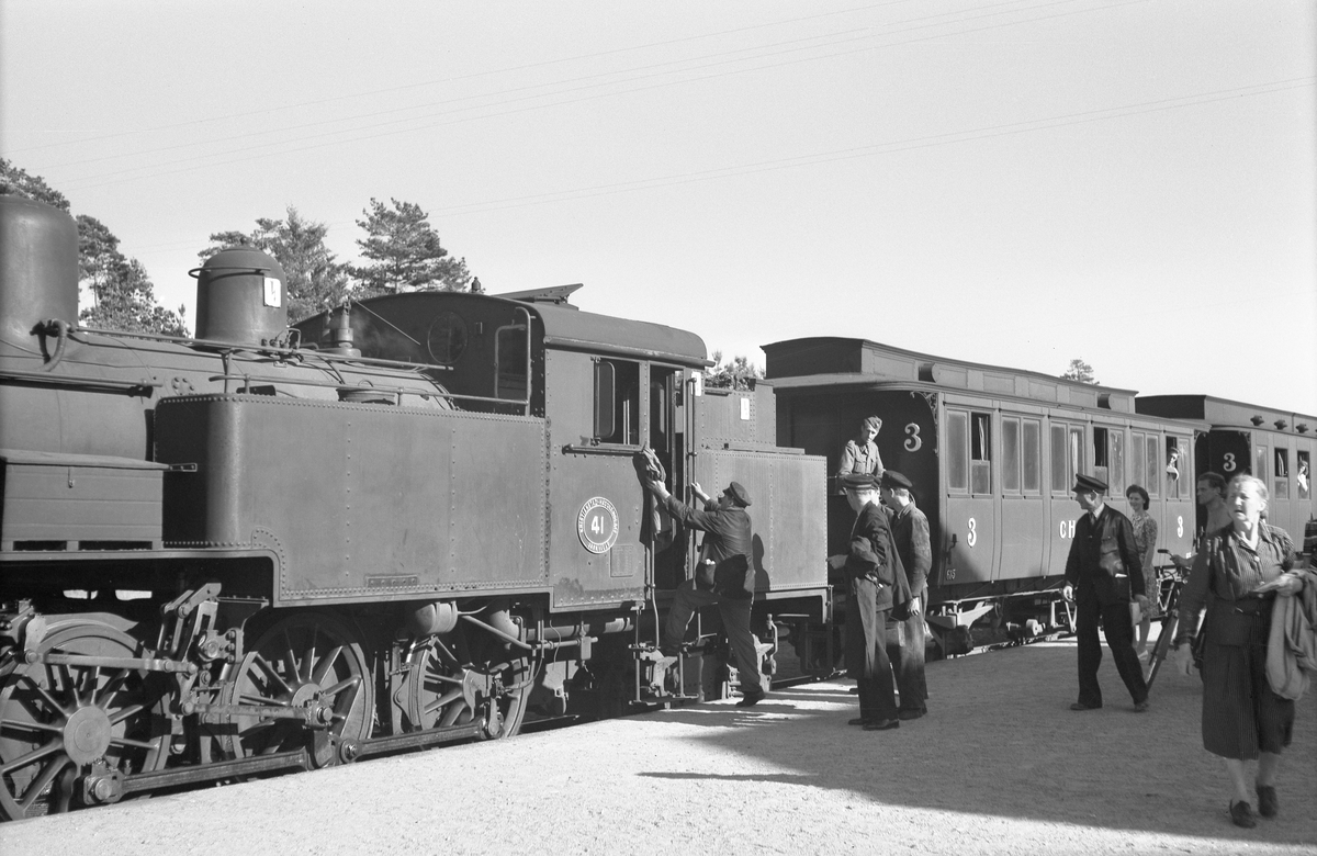 Kristianstad - Hässleholms Järnväg, CHJ lok 41 med tåg. Personalbyte i Brösarp.