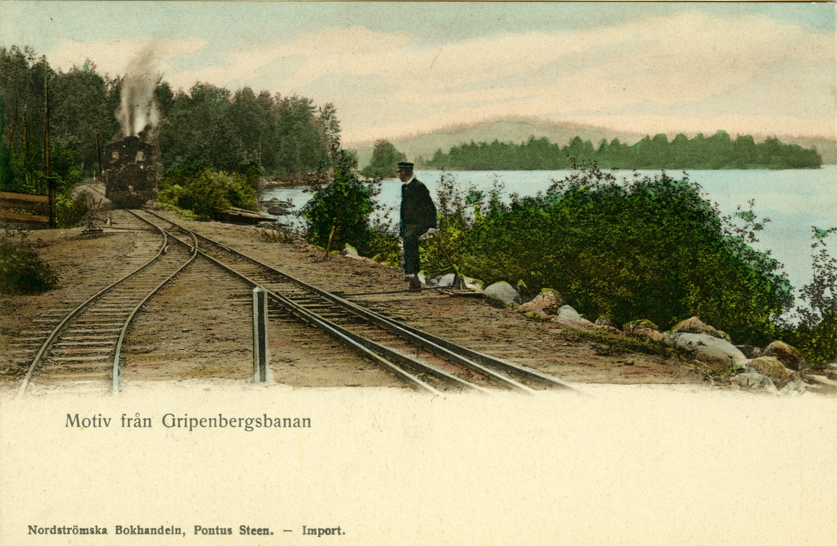 Ånglok ankommer till Bunn station, till höger syns sjön Bunn.