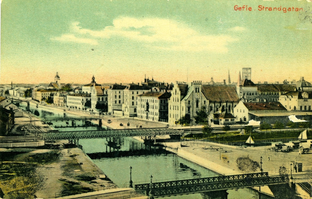 Strandgatan, vy över Gavleån med Gävle centralstation till höger.