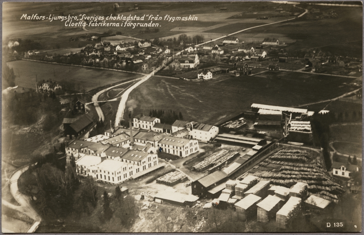 Flygfoto över Cloettafabrikerna i Ljungsbro.