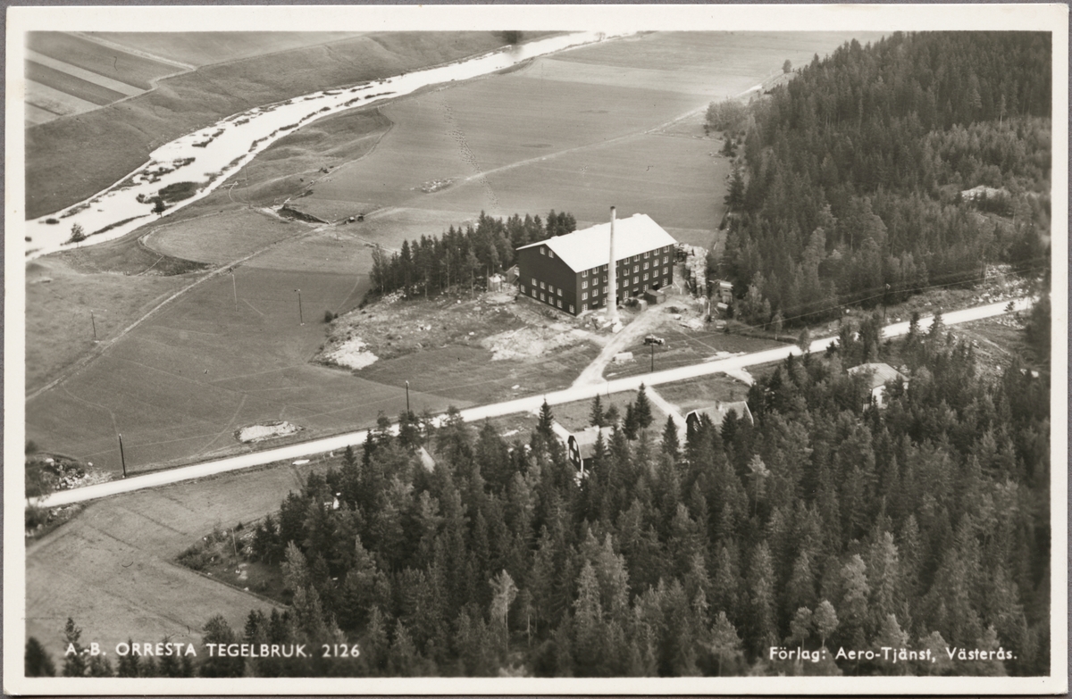 Flygfoto över Orresta tegelbruk i Kärsta.
